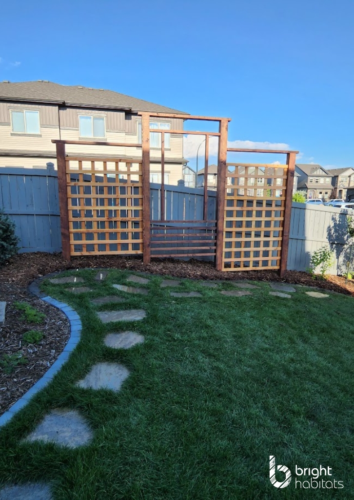 A creative approach to enhancing backyard privacy without sacrificing style. Installed alongside a fence, this feature combines artistic elements with practical screening. The result is a visually engaging space that feels more secluded and intentional.